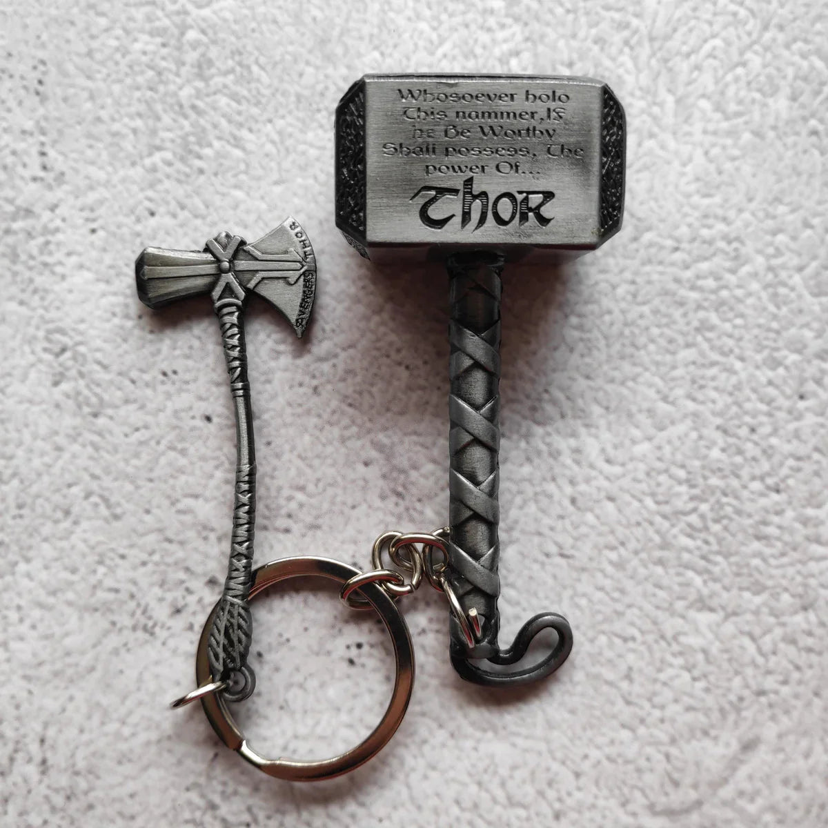 Dual Power Thor Hammer & Stormbreaker Metal Keychain Set - Silver